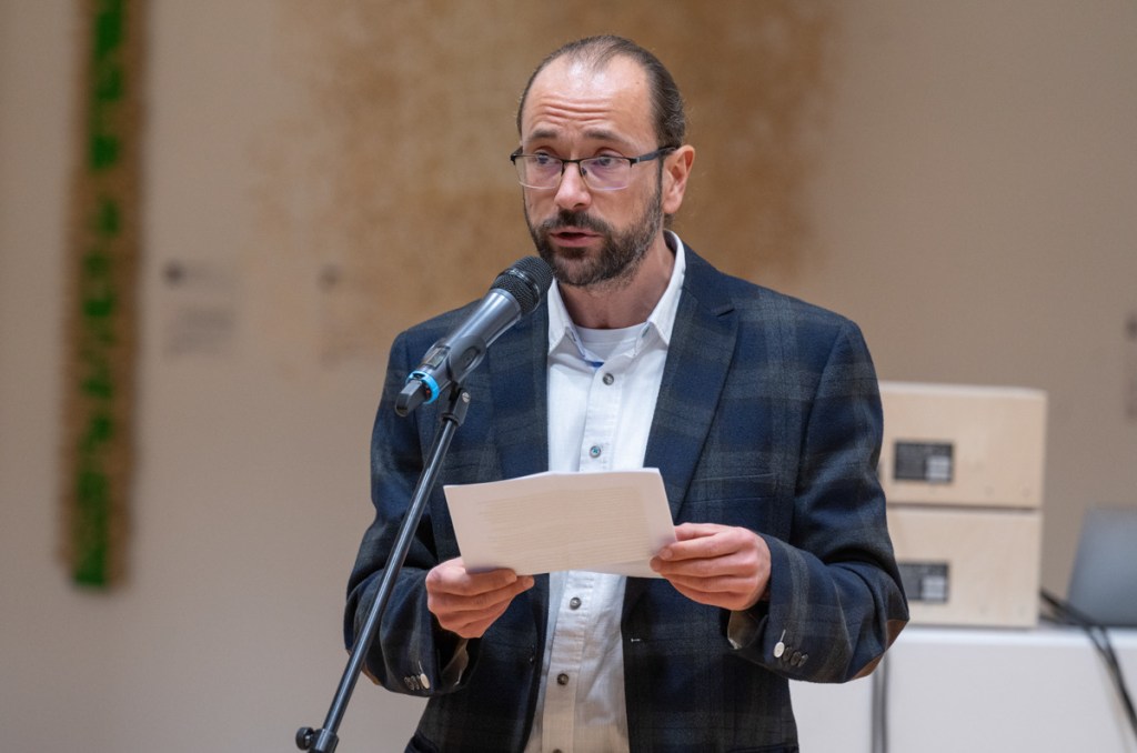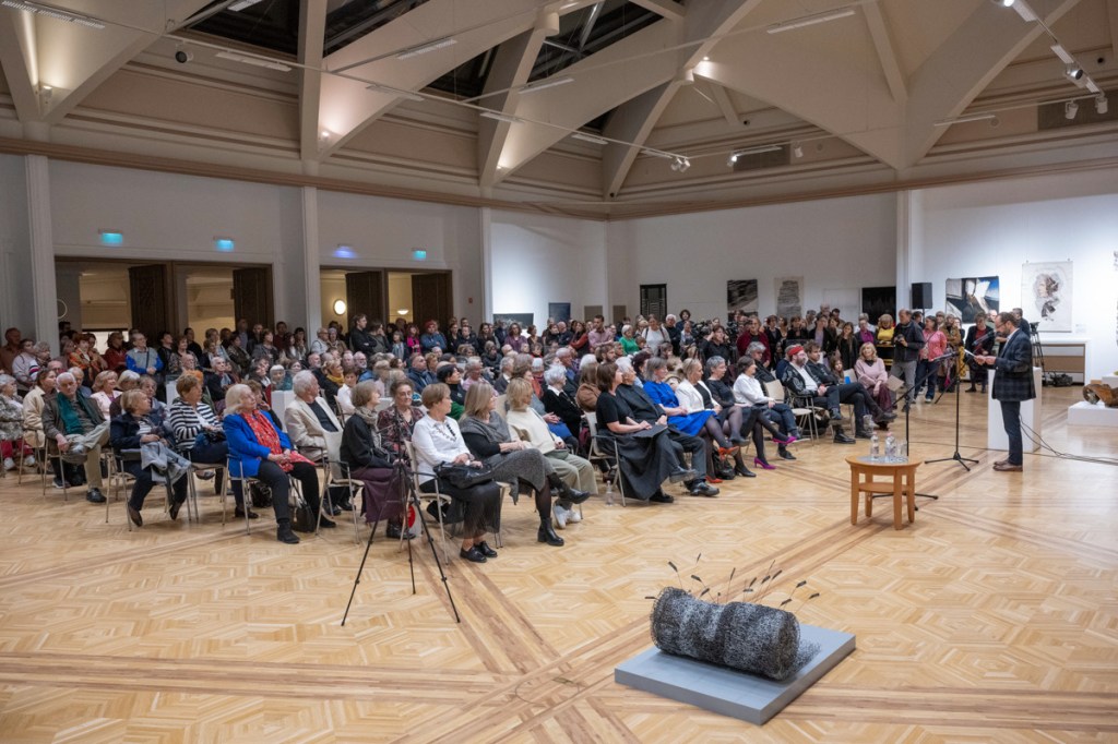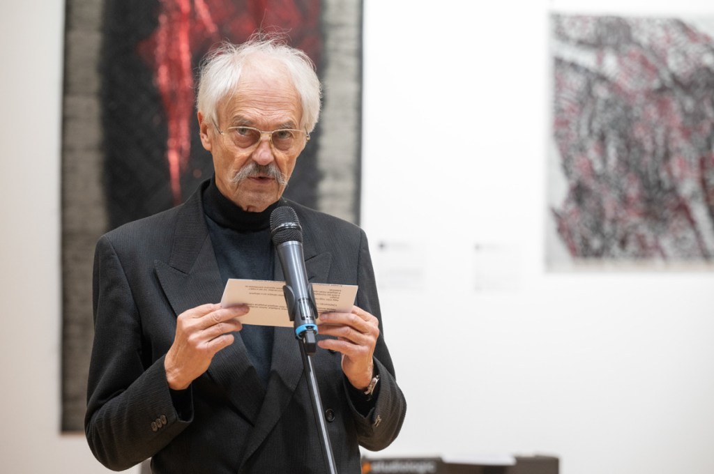 Az MMA nevében a kiállítást köszönti SÁRA Ernő, Ferenczy Noémi-díjas tervezőgrafikus, Magyarország Érdemes és Kiváló Művésze, az MMA rendes tagja, az MMA Iparművészeti és Tervezőművészeti Tagozatának vezetője
