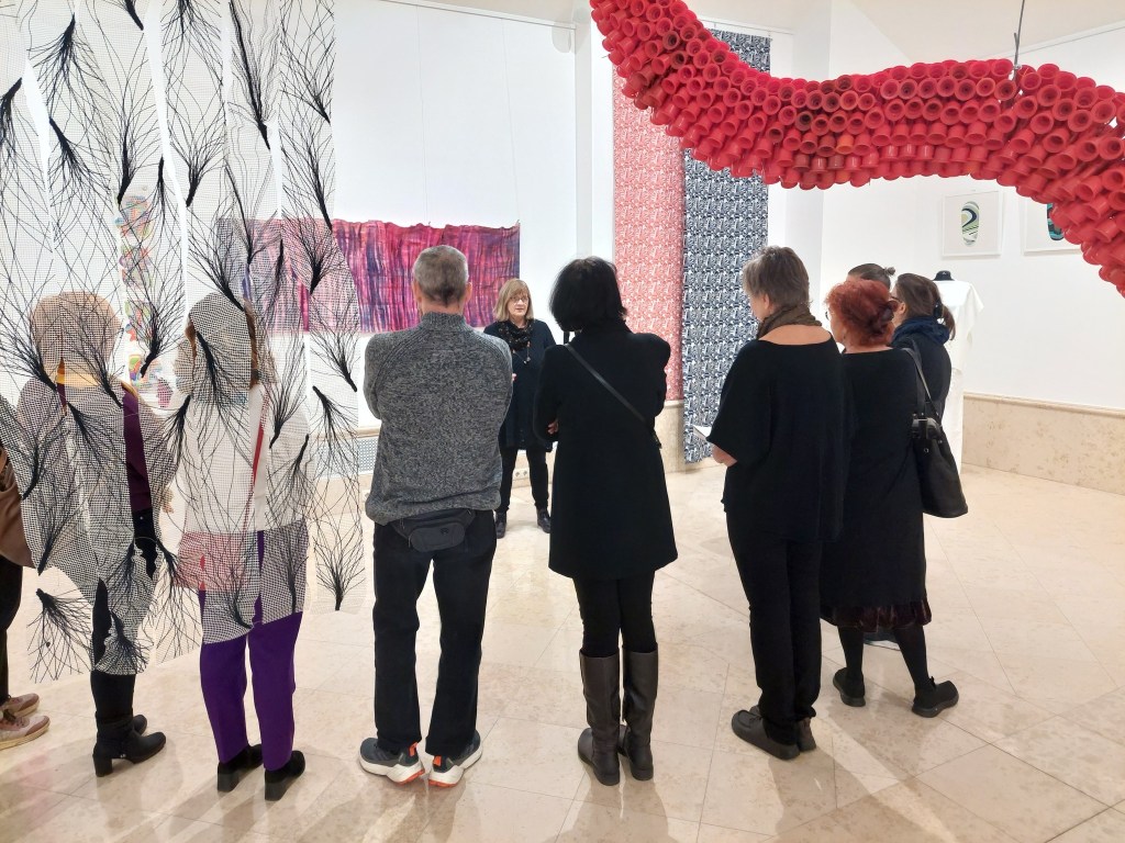 A nyitvatartási idő alatt tematikus tárlatvezetéseket tartottunk, ezáltal még több látogató ismerhette meg a kortárs magyar textilművészet jelenét.