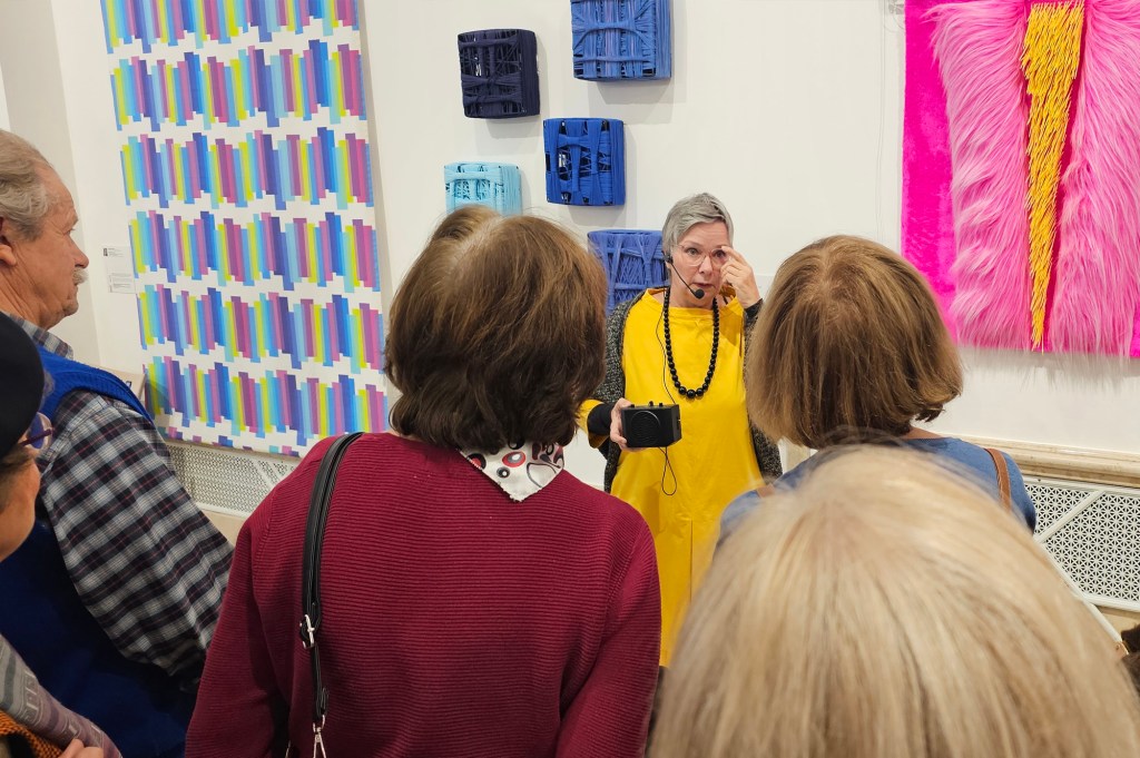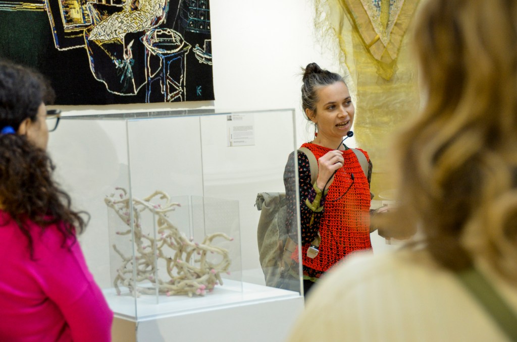 Az első alkalom 2025.november 18.-án 16:00 órakor egy kurátori tárlatvezetés volt, amelyen a Kulturális Alapítvány a Textilművészetért kuratóriumi tagjai – Hideg Orsolya és Papp-Vid Dóra DLA, textil- és öltözéktervező művészek – a kiállítást a rendező kurátorok szemszögéből mutatták be. Olyan témákat hoztak fel, hogy hol tart ma a textilművészet és milyen módon inspirálódnak és alkotnak a kortárs művészek? Milyen textil műfajokat lehet megkülönböztetni és hogy viszonyul napjainkban az iparművészet a képzőművészethez? Hogyan lehet valaki textilművész?